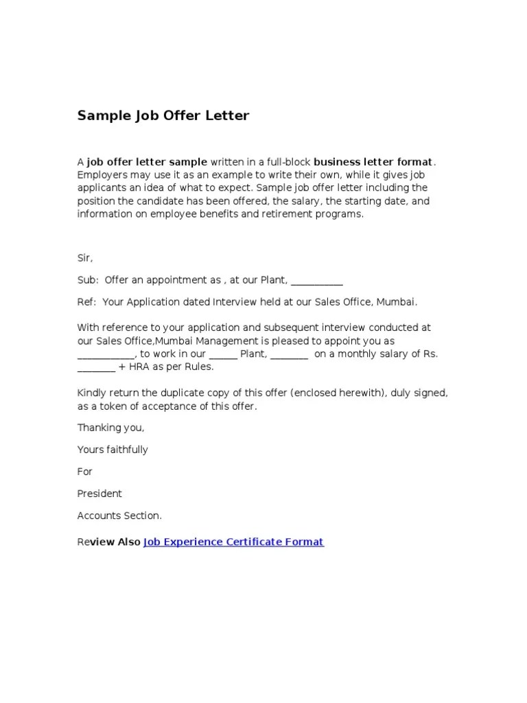 Simple Job Offer Letter Sample Malaysia Katsureipati4